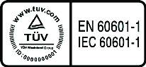 | Det mest anerkendte internationale sikkerhedsmærke. Optagelsen på sikkerhedslisten tilkendegiver, at produktet er testet i henhold til IEC 60601-1. |