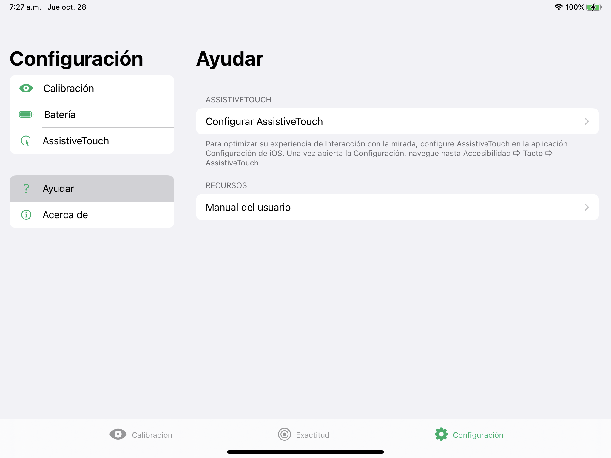 Aquí se puede calibrar el seguidor ocular del dispositivo TD Pilot.