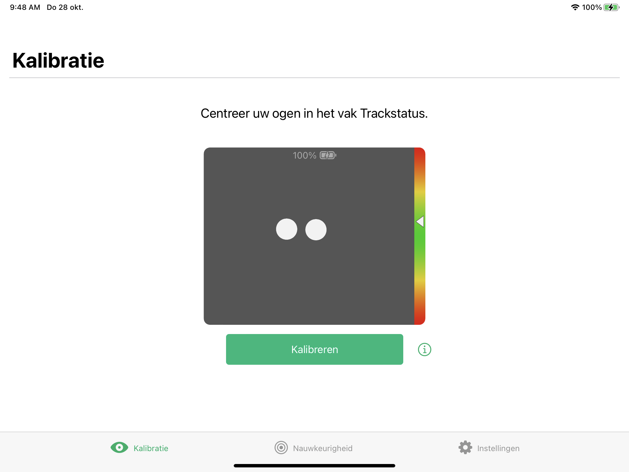 Kijk naar elke punt in elke cirkel op het scherm om te zien hoe nauwkeurig het oogvolgen gaat dat gebied.