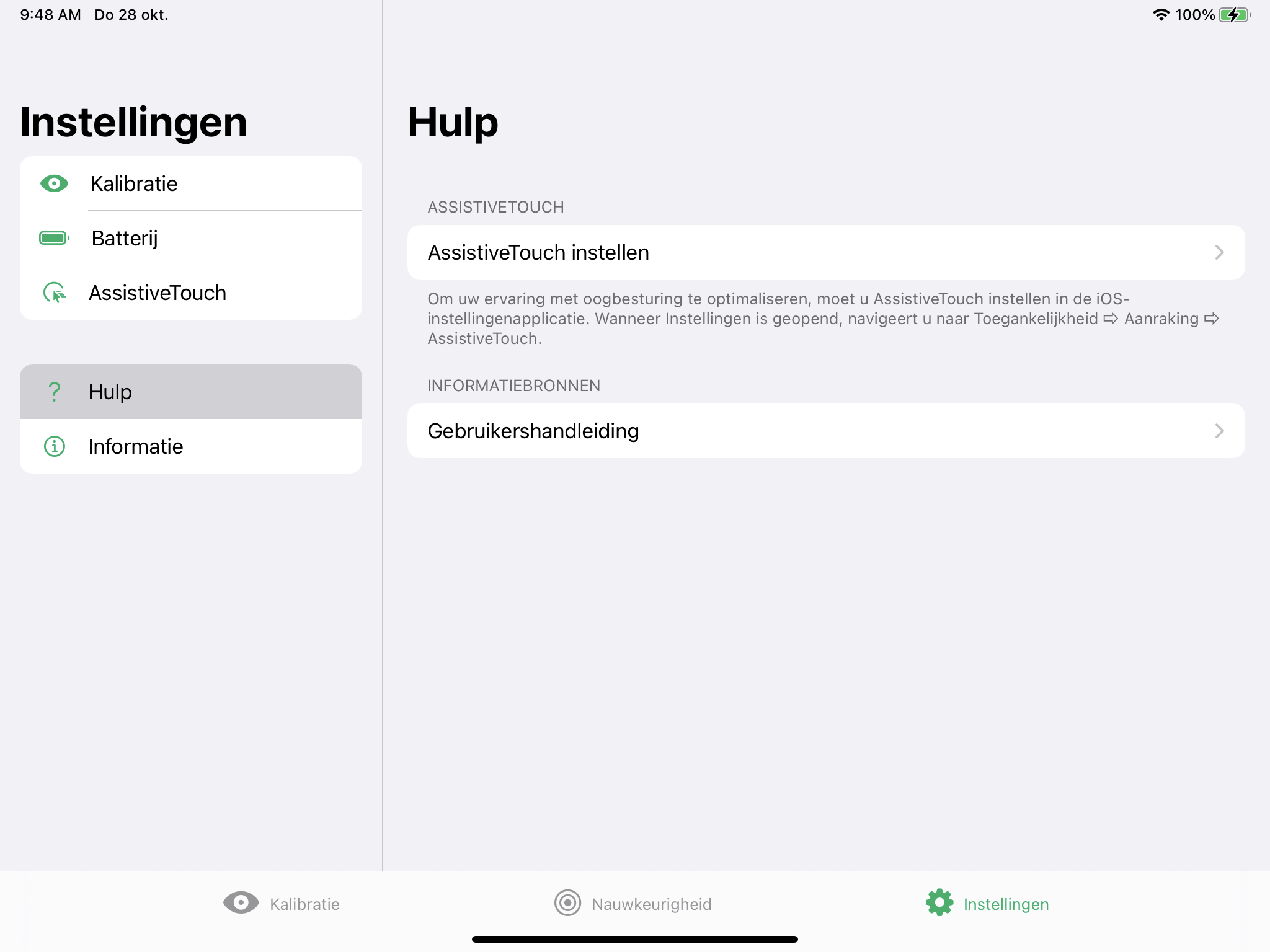 De TD CoPilot-software kan worden gebruikt om de oogbesturingsmodule te kalibreren, de instellingen voor de kalibratie te bepalen, de accucapaciteit van de TD Pilot Base te controleren, enz.