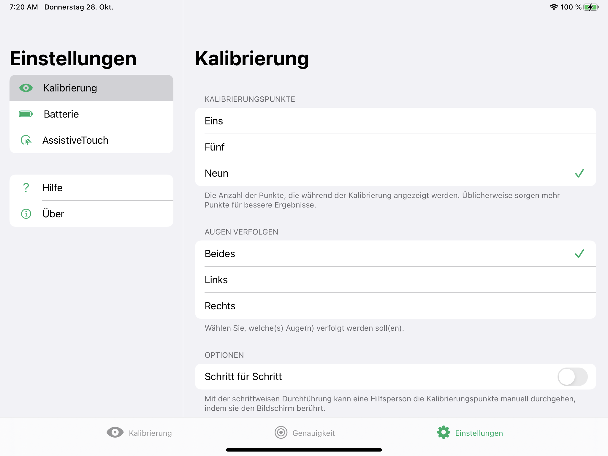 Die Augensteuerung im TD Pilot können Sie hier kalibrieren.