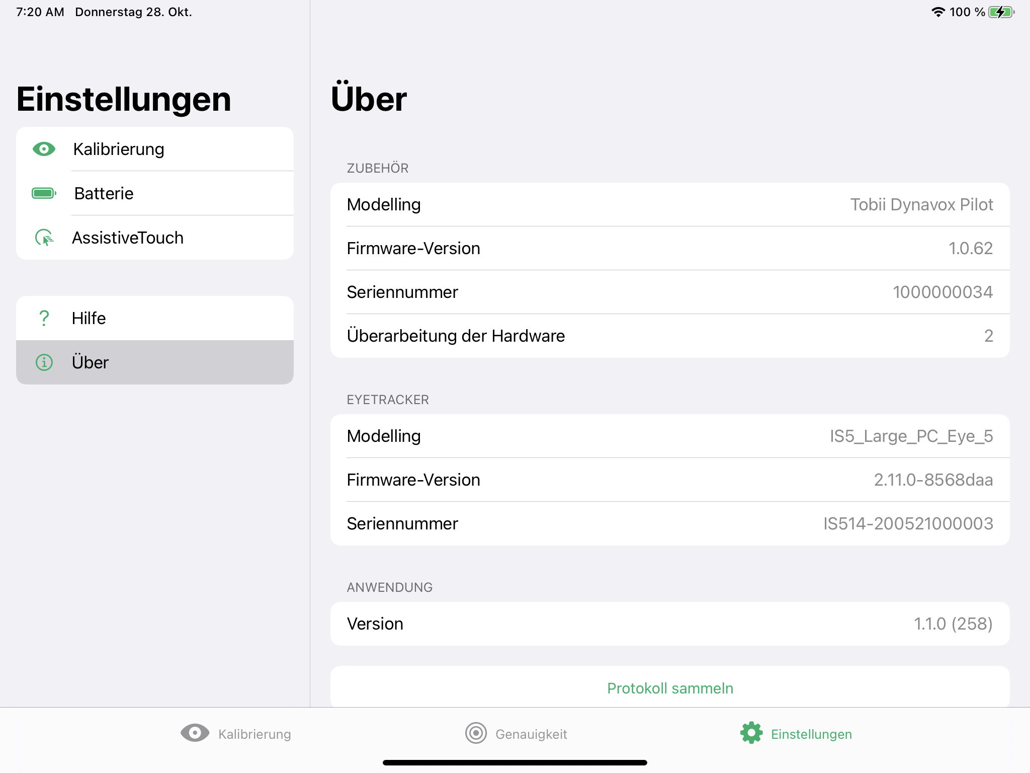 Zum Sammeln der Protokolle für den TD Pilot und die Augensteuerung: