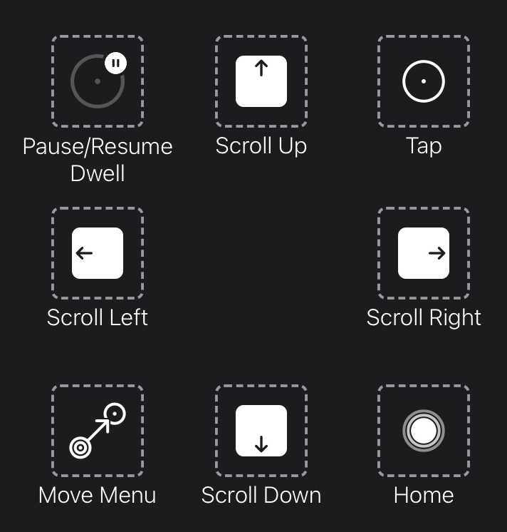 The AssistiveTouch Menu is an Eye gaze-accessible navigation tool that enable you to tap, swipe, adjust the volume, switch between apps, and more using your eyes.
