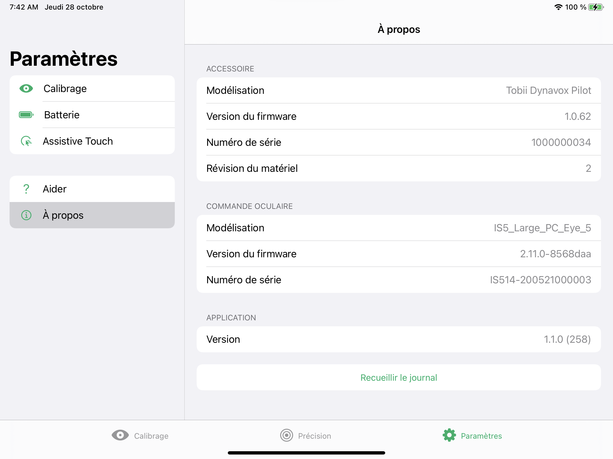 Pour collecter les journaux du TD Pilot et de la commande oculaire :