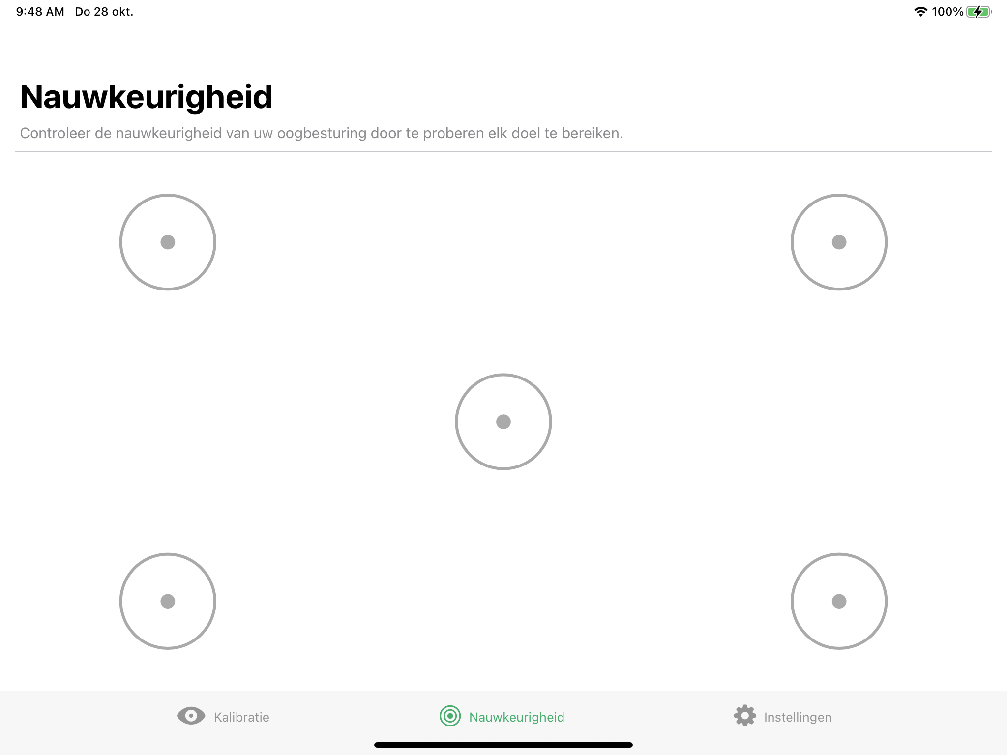 Kijk naar elke punt in elke cirkel op het scherm om te zien hoe nauwkeurig het oogvolgen gaat dat gebied.