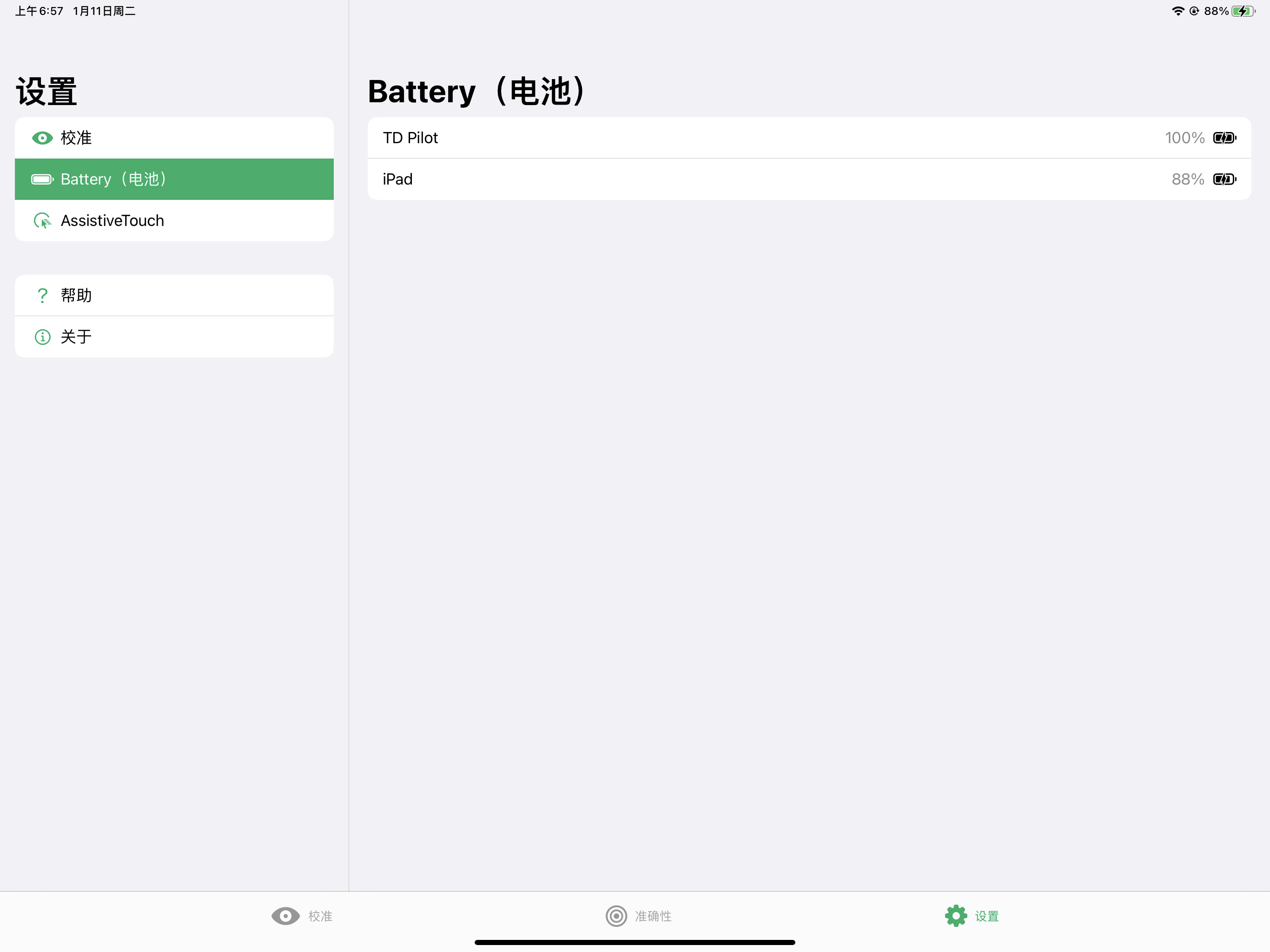 TD CoPilot 软件可用于校准眼控仪、自定义校准设置、检查 TD Pilot Base 的电池寿命等。